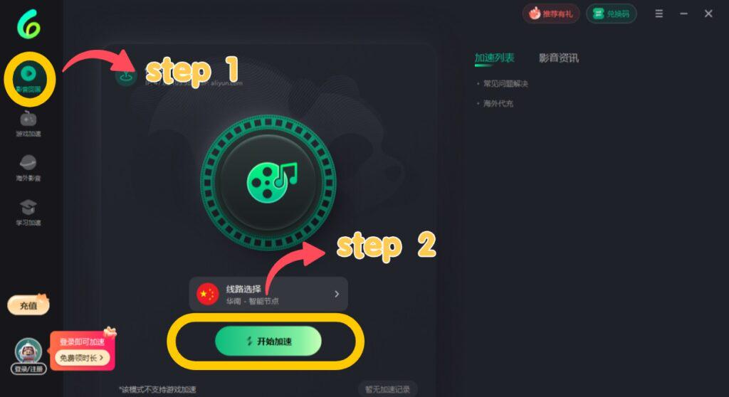 記得先兌換然後喺左邊搵到**【影音返國】-點擊【開始加速】**