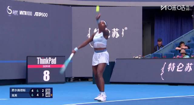 手機螢幕裡高芙正打出那記穿越球,白色網球劃出閃電弧線的瞬間——我的直播畫面突然定格在費爾南德斯瞪大眼睛的表情,右下角的小圓圈轉得比網球還歡快。
