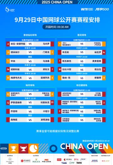 蓮花球場同樣看點十足,斯瓦泰克對戰奧索里奧的比賽被專業球評預測為「今年最值得關注的女單對決之一」。而映月球場和布拉德球場的雙打組合更是暗藏玄機,多對新老搭檔的首次碰撞,很可能改寫今年的雙打格局。