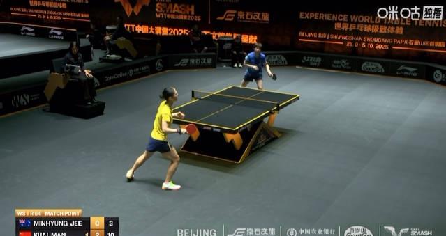 昨晚刷手機時,朋友圈突然被一條比賽結果刷屏——#蒯曼3比0池旼亨#。WTT中國大滿貫女單比賽裡,那個紮著馬尾、眼神帶殺的姑娘,用11-9、11-6、11-3的比分乾脆利落橫掃對手。我盯著「順利晉級」四個字,手指卻停在螢幕上半天沒滑動。