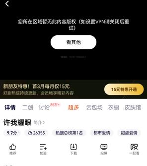 許我耀眼電視劇喺國內嘅平台播放 但喺海外嘅觀眾由於各個地區同國家嘅服務商唔同,各地嘅區域調整唔同,國內正常播放嘅平台海外用戶無法正常觀看