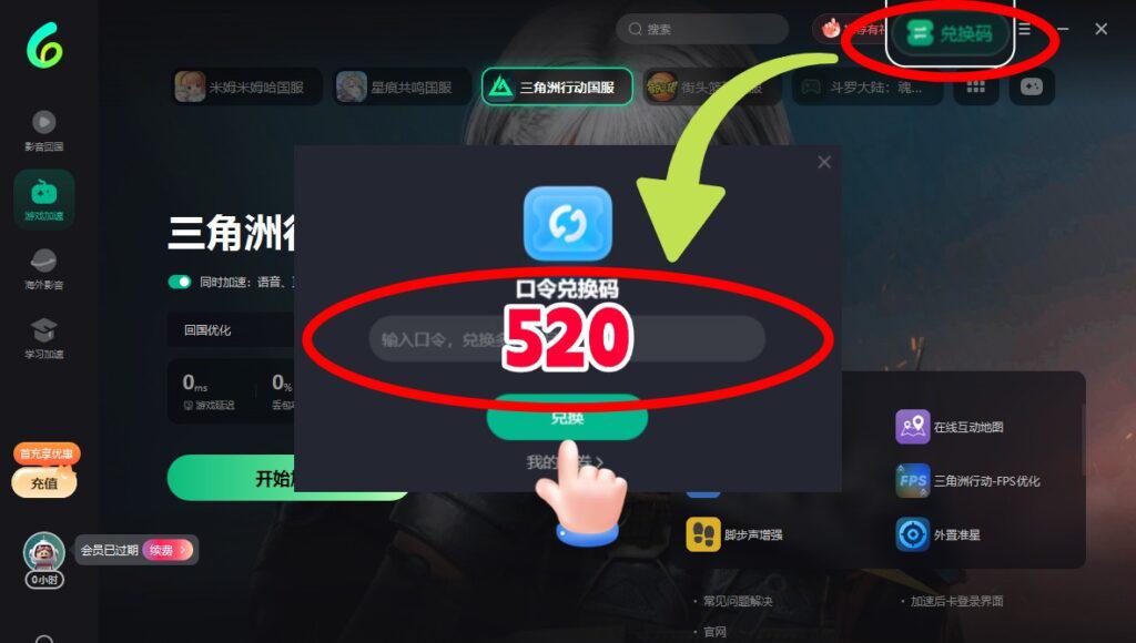 ①喺界面搵到**【我的】–【兌換碼】-輸入【520】-即可領取免費**時長!