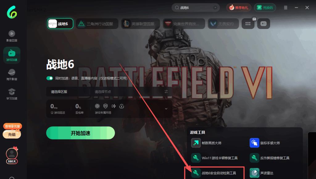 第四步:記得先兌換然後再左邊搵到**【遊戲加速】-上方搜尋欄【遊戲名稱】-點擊【開始加速】**