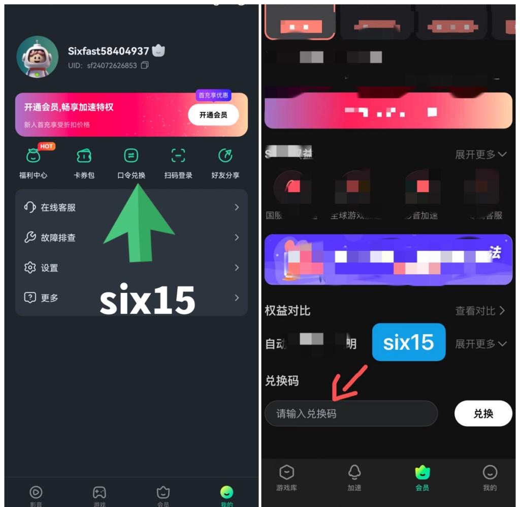 下載同註冊Sixfast應用之後,喺右上角搵到兌換碼功能,輸入six15就可以獲得72小時使用時間。記得要先兌換先可以正常使用。