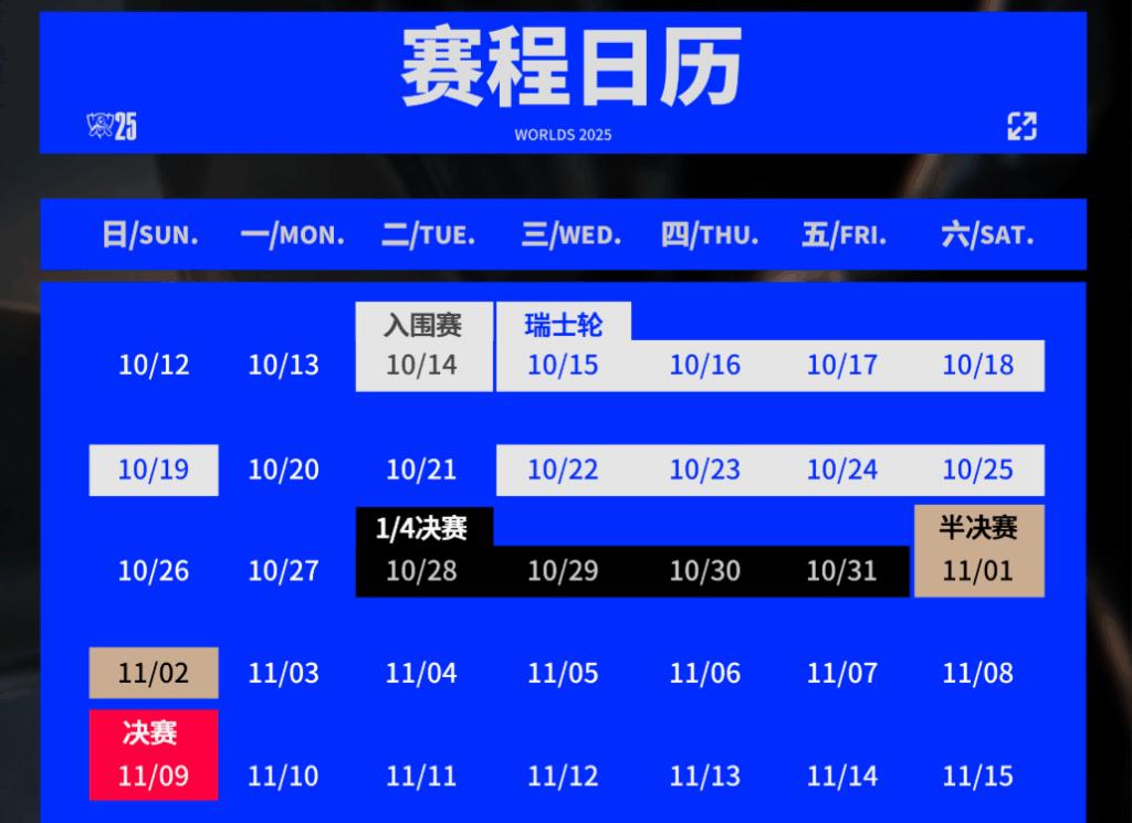 瑞士輪階段(Bo1、Bo3):10月15號至25號,同樣喺北京智慧電競賽事中心舉行。16支隊伍會進行5輪瑞士輪比賽,頭三輪喺10月15號至19號舉行,後兩輪就喺10月22號至25號舉行。