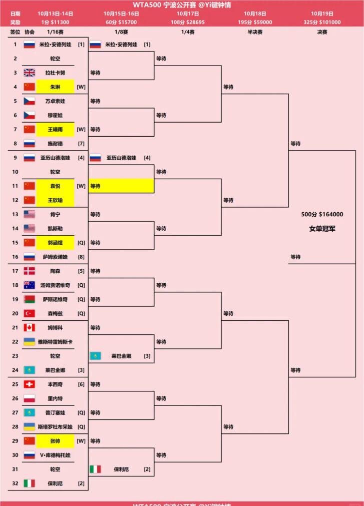 今次WTA500寧波站嘅賽事安排已經全部出爐,從簽表可以睇到各路高手嘅對陣情況。首輪賽事就已經充滿睇頭,多位種子選手將會迎戰實力強勁嘅對手。賽程安排得相當緊湊,每日都有多場精彩賽事上演,球迷們記得mark低心水場次嘅時間啦!