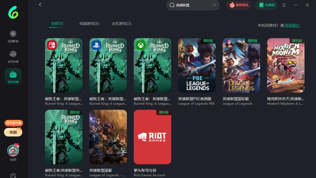 之後喺遊戲庫內搜索英雄聯盟,然後點擊加速,就可以正常解決喺海外玩國服嘅網絡問題