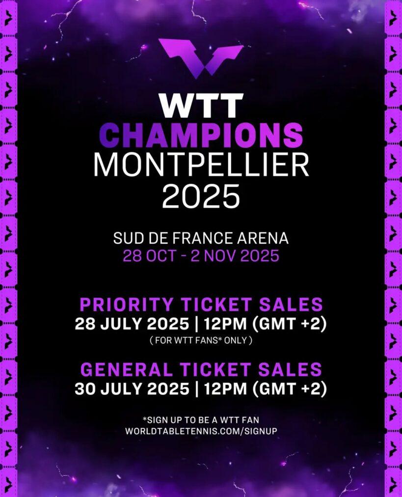 - WTT蒙彼利埃冠軍賽嘅最新情報