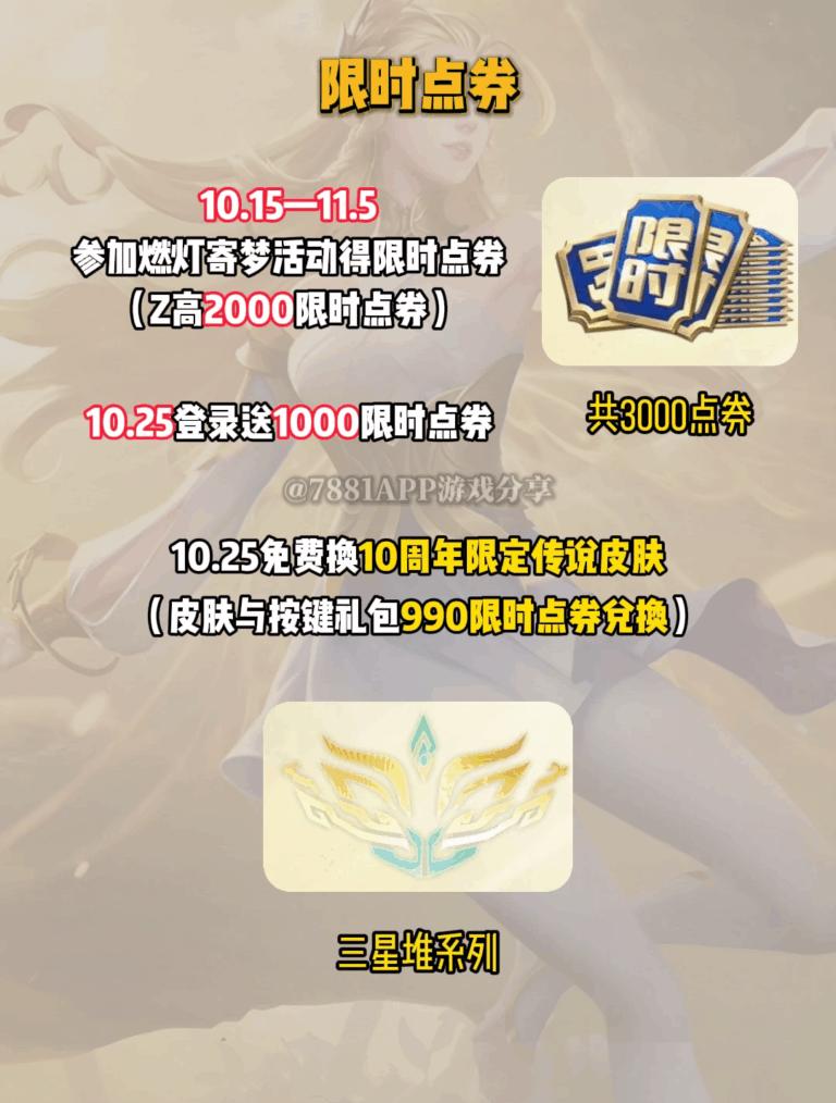 王者榮耀十週年慶典將會喺2025年10月28日正式開鑼,今次官方為玩家準備咗堪稱「年度福利天花板」嘅豐厚獎勵,其中包括後羿首款免費傳說皮膚、限時點券回歸同多款限定皮膚返場等重磅內容。