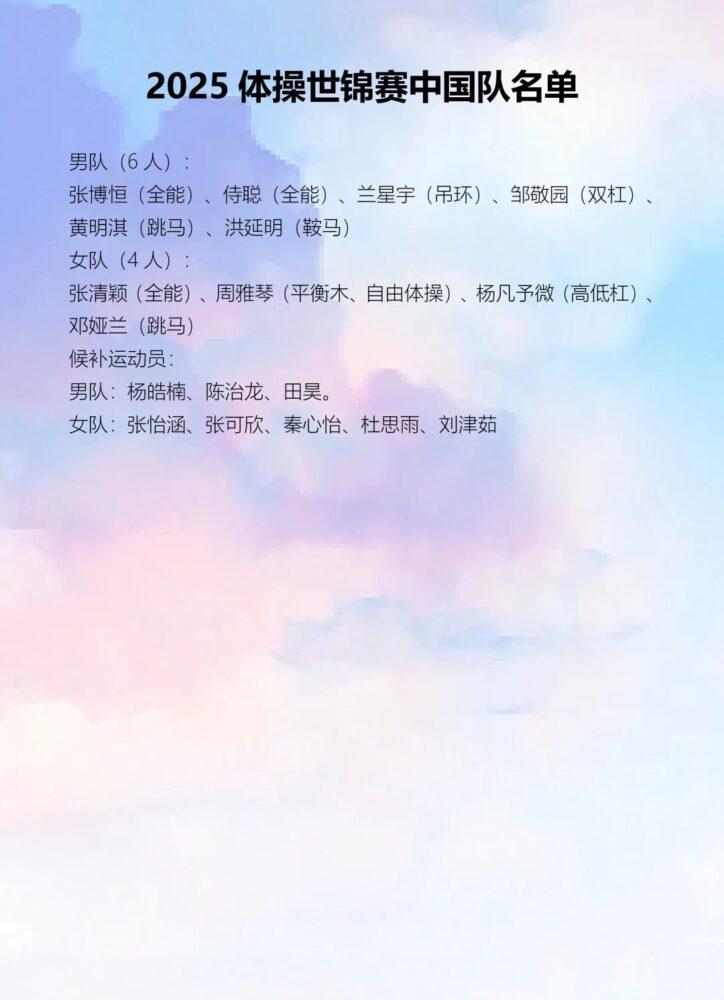 2025年體操世錦賽將會喺10月19號正式開鑼。男子項目方面,中國隊派出老中青三代運動員一齊出戰,由張博恒同鄒敬園帶頭,希望可以為中國男隊再創佳績。張博恒喺巴黎奧運會攞到銀牌,其實佢早喺2021年北九州世錦賽就已經攞到個人全能冠軍,雖然2022年利物浦世錦賽衛冕失敗,但係佢六個單項嘅均衡實力依然令人印象深刻。