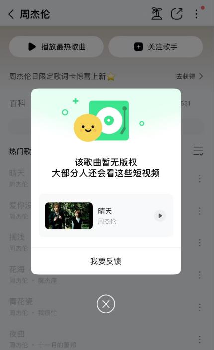 好似周杰倫、林俊傑、陳奕迅呢啲熱門歌手嘅歌都聽唔到!成個歌單都變咗灰色!