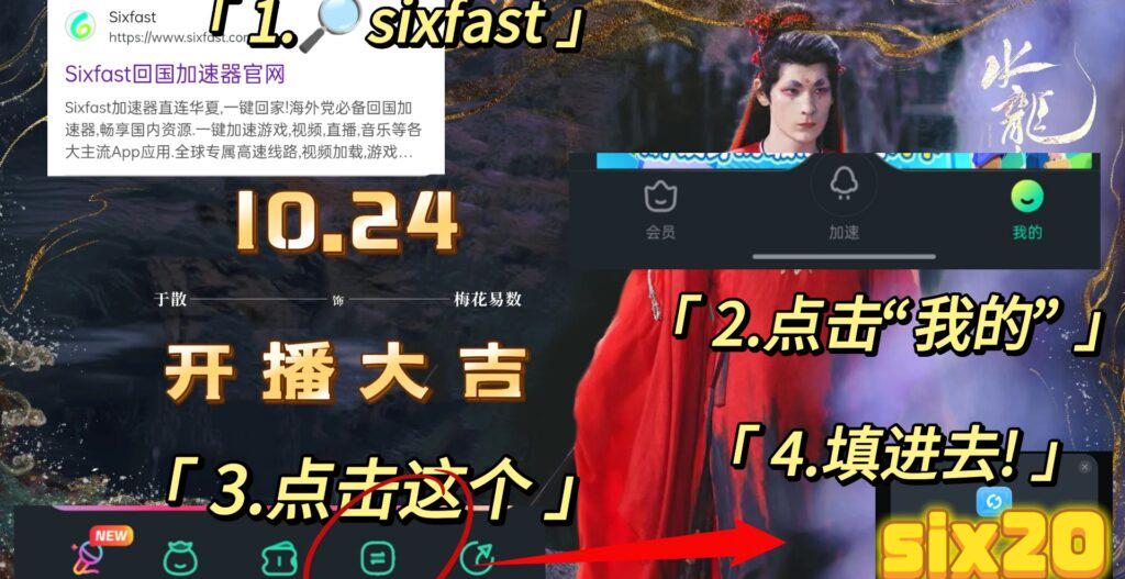 亦都可以直接點擊呢個連結:https://www.sixfast.com/tg-exchange,跟住下圖所示填寫兌換碼【six20】,並按照右邊步驟註冊登錄Sixfast,領取免費使用時長。(支援手機同電腦雙平台)