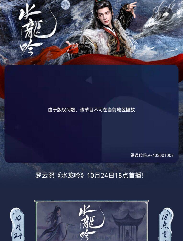 水龍吟電視劇喺國內平台播放,但海外觀眾由於各地區同國家嘅服務商唔同,區域限制令海外用戶無法正常觀看。