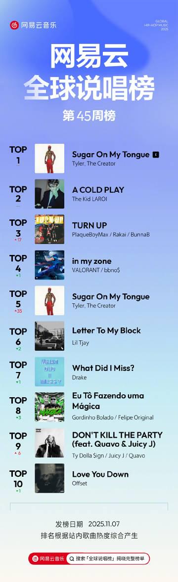 昨晚睡前刷手機時,突然看到朋友圈被網易雲的說唱榜單刷屏——「2025VOL.45全球說唱周榜」那幾個字跳進眼裡,我差點從沙發上彈起來。你知道那種感覺嗎?就像聞到老家巷口早餐攤的油炸香,明明饞得不行,卻隔著半個地球摸不著。