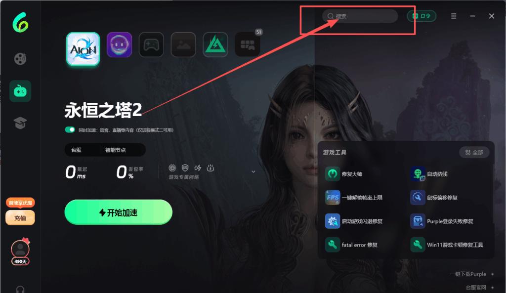- 打開Sixfast加速器,搜尋《永恆之塔2》