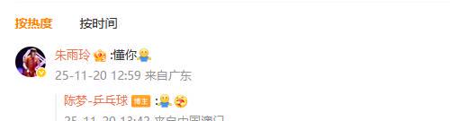正要劃走時,眼角瞥見評論區那個熟悉的頭像。朱雨玲只回了兩個字:「懂你」,後面跟著顆藍色愛心。我手指頓在螢幕上,想起去年奧運期間,我在唐人街餐廳看女團決賽——當陳夢贏下最後一分時,鏡頭掃過觀眾席,朱雨玲正用力拍手,嘴唇抿得發白。