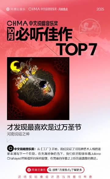 🔥這次榜單最大的亮點,要數河南說唱之神的《才發現最喜歡是過萬聖節》。從早期《工廠》到現在,這位音樂人的藝術人格越來越鮮明。整首歌建立在Juliana Chahayed的循環採樣上,用最簡單的編曲營造出獨特氛圍。有樂評人私下透露,這首歌在國內上線三天播放量就突破百萬,但在海外平台卻遲遲不見蹤影。
