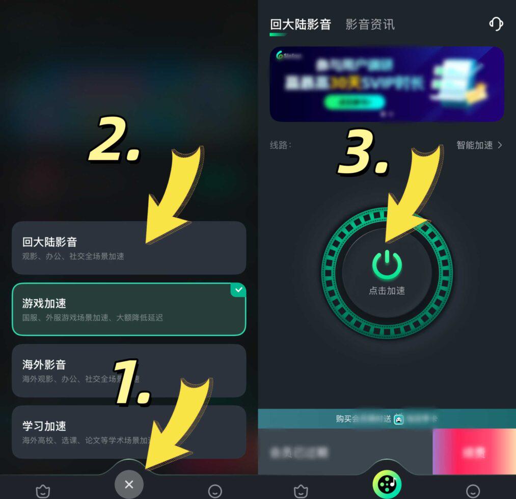 第三步,兌換完之後,先可以到下方**【切換模式】,搵到【回國影音】**,點擊加速
