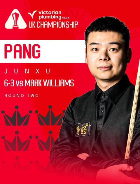 結果呢?龐俊旭硬是打出了單杆76分、53分和一桿高質量的116分,以6比3的比分,把這位前世界冠軍送回了家。