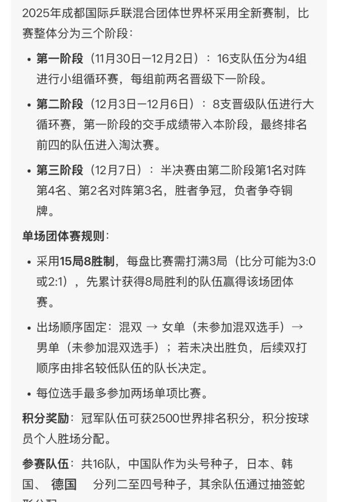 乒乓球迷注意啦!今次要同大家深入聊聊喺成都舉行嘅混合團體世界盃,特別係12月6號嗰場萬眾期待嘅中日巔峰對決。作為混合團體項目入選奧運後嘅首屆世界盃,呢場賽事意義重大,而中日兩隊每次交手,都肯定火花四濺,話題性十足。