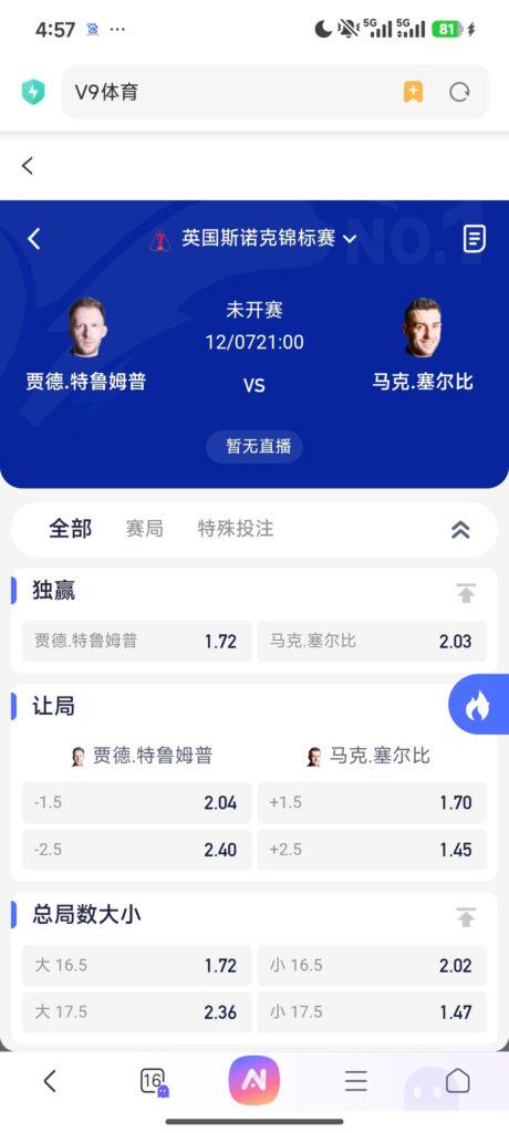 作為奪冠最大熱門,特魯姆普今次衛冕之路含金量十足:16強戰6-0橫掃斯佳輝,八強賽逆轉丁俊暉,四強賽擊敗羅拔臣,全程展現出極強嘅調整能力。作為上屆冠軍,如果佢成功奪冠,就會成為繼奧蘇利雲之後,新千年以嚟第二位實現英錦賽衛冕嘅選手。賽前奪冠賠率中,特魯姆普以1賠5高居榜首,外界普遍睇好佢延續進攻火力。