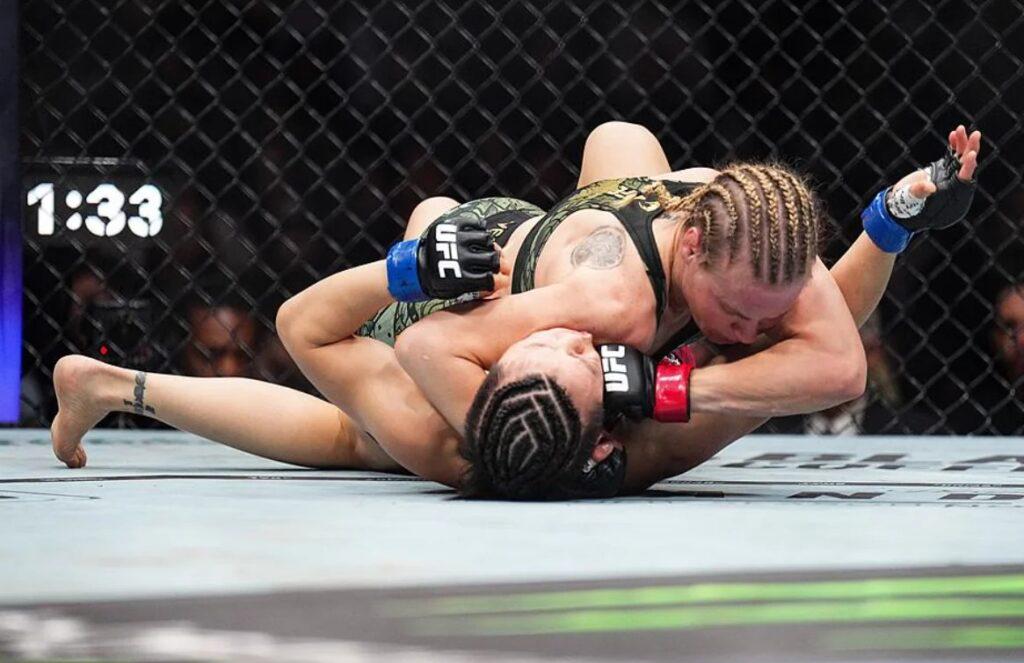 【女子草量級】 巴西名將阿曼達·萊莫斯(戰績15-5-1,8次KO,3次降服)將會對陣加拿大女將吉蓮·羅伯遜(戰績16-8,3次KO,9次降服)。萊莫斯排名女子草量級第五,擁有極強嘅終結能力,8場KO勝利彰顯其站立打擊優勢;而羅伯遜就係地面技術嘅佼佼者,9場降服勝利令佢成為女子賽場嘅「絞殺女王」,呢場「打擊vs降服」嘅對決必定精彩紛呈。