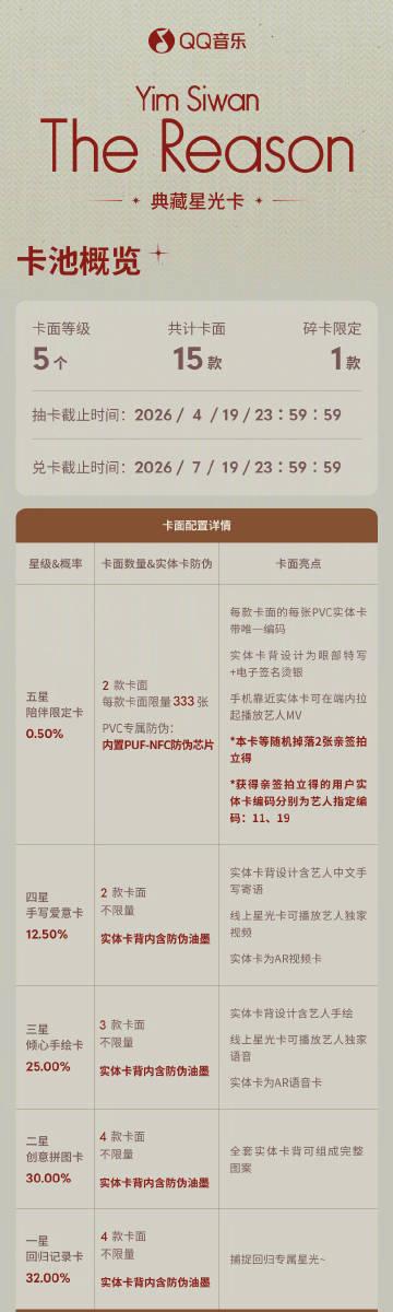 說真的,你有沒有過這種時刻?深夜刷著微博,突然看到偶像任時完要發典藏星光卡的消息,心跳瞬間加速。點開預告,新專未公開卡面、獨家視頻、還有親筆中文寄語……每一樣都讓人想立刻收藏。但下一秒,你習慣性地點開QQ音樂想重溫他的歌,螢幕上卻冷冷顯示「該歌曲在您所在的地區暫時無法播放」。那一瞬間,是不是感覺自己和那份星光之間,隔了一整個太平洋?