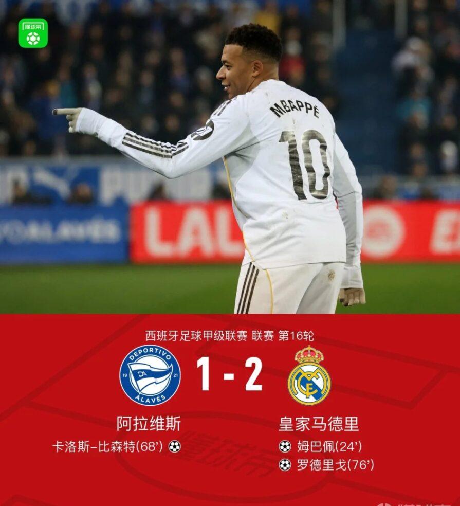 絕境之下皇馬雙核企咗出嚟!第76分鐘雲尼斯奧斯左路強勢突破撕開防線,底線附近準確傳中,羅德里戈門前及時插上剷射入網,2-1!連續兩場比賽建功嘅羅德里戈,用關鍵入波成為球隊救主英雄。比賽尾段仲出現爭議時刻,第87分鐘雲尼斯奧斯前場犀利突破殺入禁區畀對手剷低,球證竟然冇判十二碼,VAR翻睇之後依然維持原判,皇馬眾將一齊表達不滿,好彩球隊頂住壓力守住優勢,最終有驚無險攞到勝利。呢場勝仗令皇馬終止連敗頹勢,暫時以4分差距緊追榜首巴塞,保住西甲爭冠主動權,阿朗素嘅帥位都暫時得以保全。