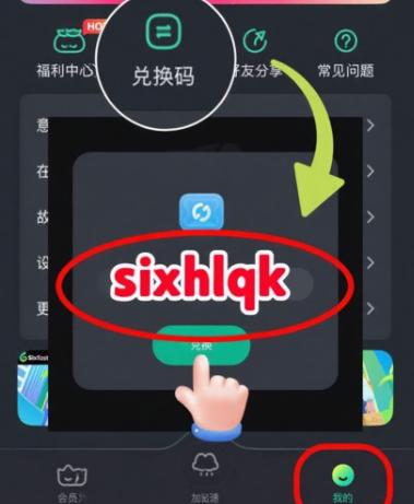 - 下載好之後跟住提示登錄同註冊,然後喺客戶端搵到「口令兌換」,輸入**【sixhlqk】**就可以免費領取加速時長!