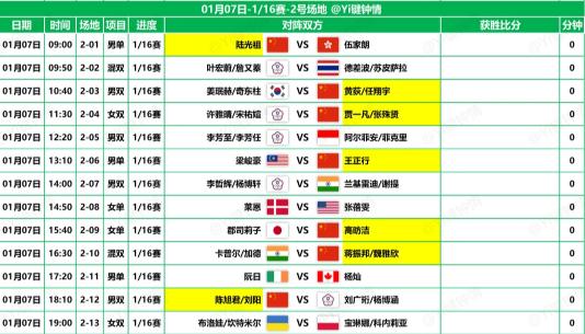 四、次日賽程(1月7日):多場焦點對決,國羽力爭16強席位
