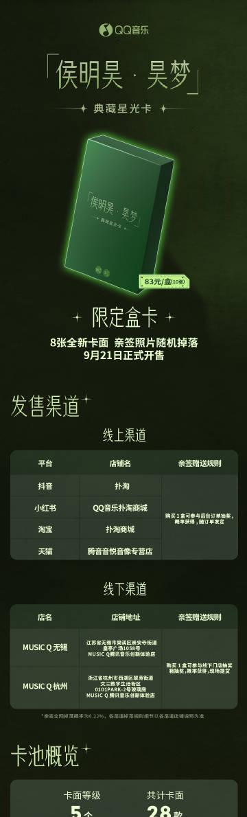 昨晚刷小紅書,看到侯明昊的「昊夢·典藏星光卡」開售消息,我那個在加拿大的表妹立刻炸了——她最愛侯明昊,卻因為QQ音樂地區限制,連新歌都聽不了。