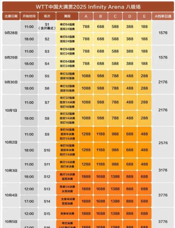 根據組委會公布嘅賽程,比賽將於9月25日至10月5日舉行,其中25日至27日為資格賽,正賽將於28日正式開始。最受關注嘅男女單打決賽安排喺10月5日下午5點,恰逢國慶假期,預計將吸引大量球迷觀看。喺呢場主場舉辦嘅乒乓盛宴中,國乒必將全力出擊,力爭以優異嘅成績回報全國球迷嘅支持。