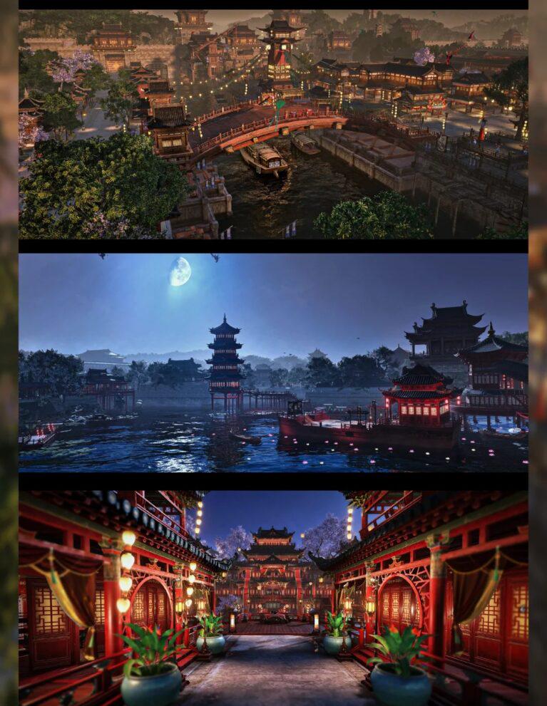 遊戲對北宋末年嘅社會風貌進行咗細緻還原,從汴京城嘅繁華市井到江南水鄉嘅煙雨朦朧,從塞北嘅蒼茫草原到蜀地嘅險峻山巒,每一處場景都充滿時代特色。服飾、建築、民俗等細節都嚴格參考歷史文獻,好似汴京城中嘅勾欄瓦舍、沿街叫賣嘅小販、身着宋裝嘅NPC,都令玩家好似穿越返去嗰個風雅與動盪並存嘅年代。